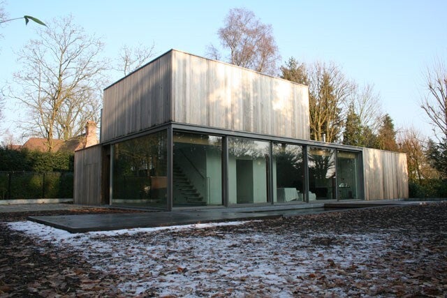 Deze villa combineert het warme karakter van hout met de strakke lijnen van aluminium ramen. Het resultaat is een moderne, elegante look met veel lichtinval en een tijdloze afwerking.